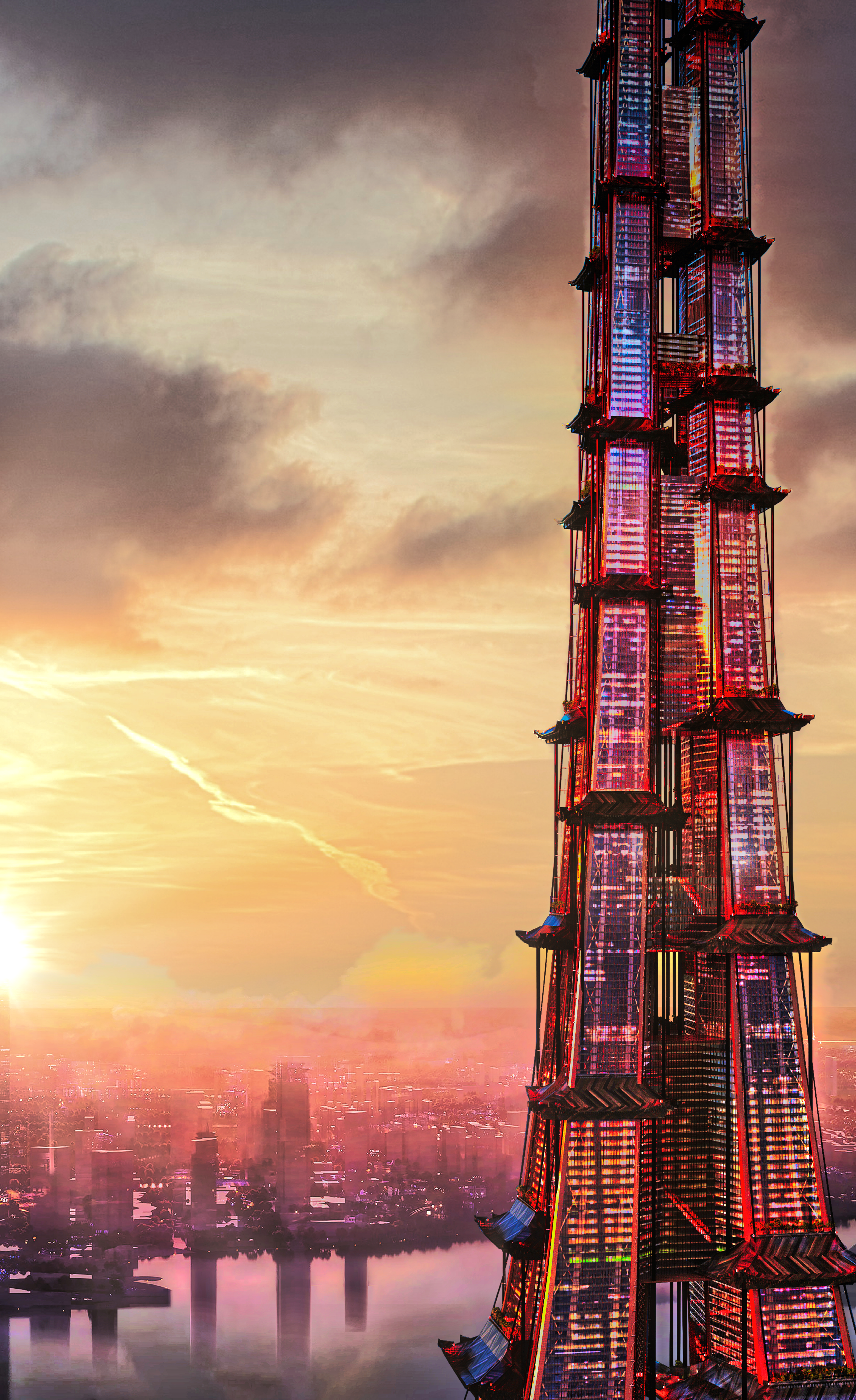 Mile high skyscraper in Hong Kong. Design inspired by Hong Kong's traditional dragon. Remixed version of The Pearl from movie SKYSCRAPER