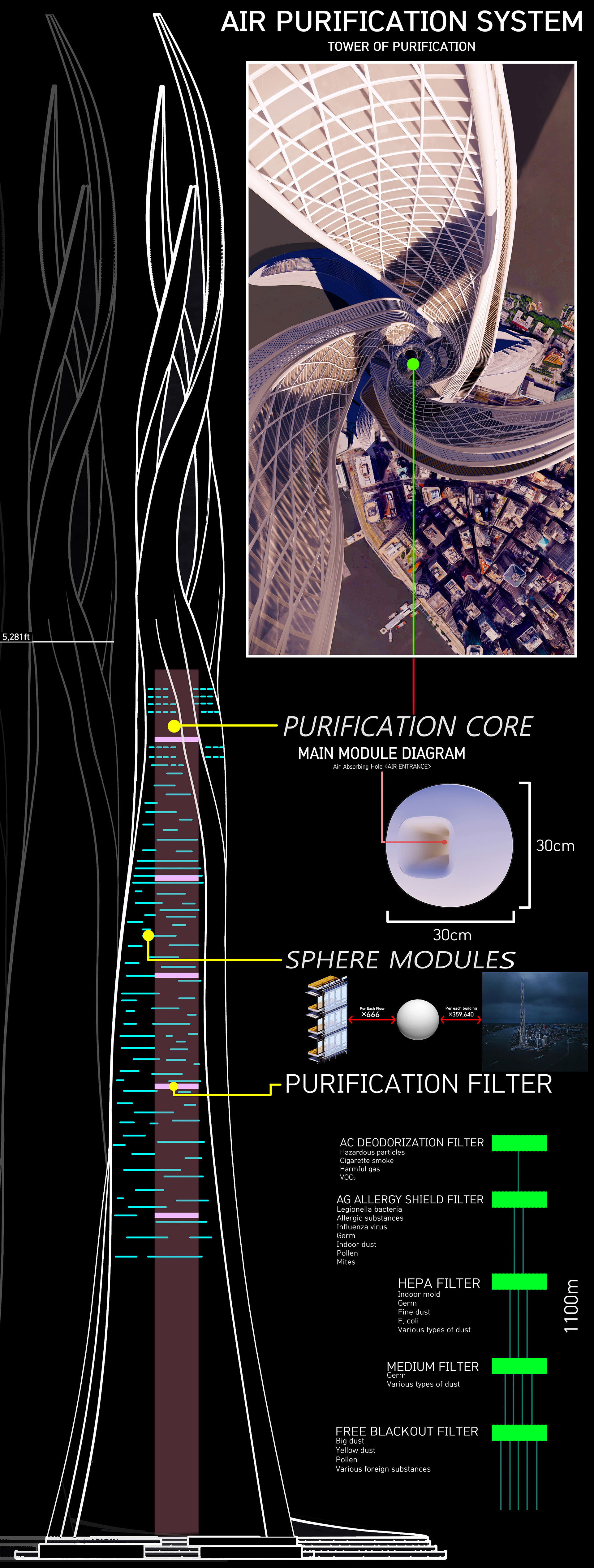 As its name suggests, these towers will purify the polluted Earth's atmosphere and environment in a short time.