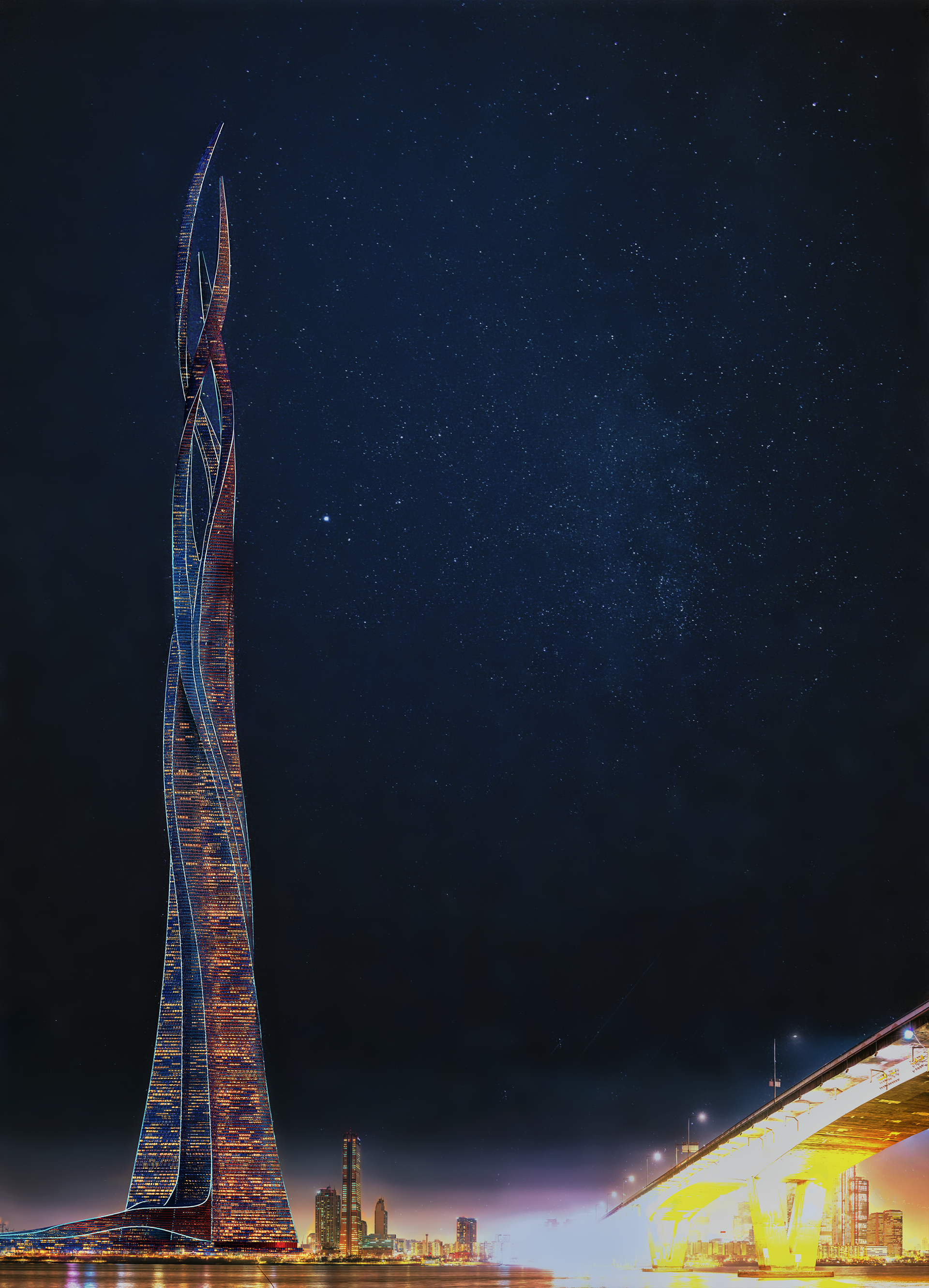 At a height of one mile above the sky, the shape of the tower is divided into three branches, rotating without a bridge or supporting structure, and appears in an unstable shape. Then, how can the design be maintained without a supporting structure and structurally stable? That is, how can a building go against the forces of gravity and physics?