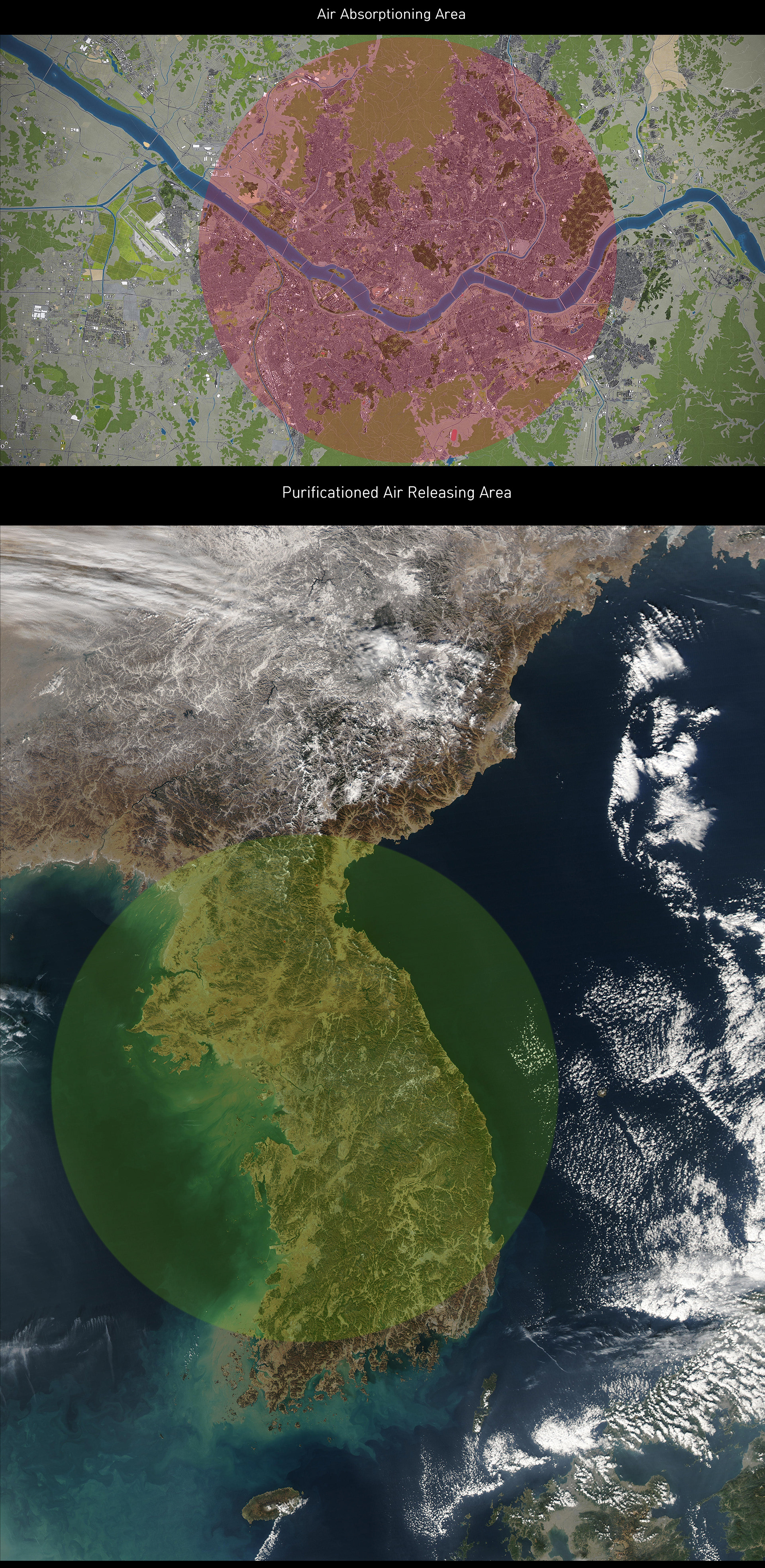 As mentioned earlier, the Earth's carbon dioxide emissions and the increase in fine dust become serious every day, and it is a great harm to the natural ecosystem and humans. However, there are many ways to reduce this number, but it has little effect, and in fact, it does not help much. So I imagined an innovative concept to prevent this problem.