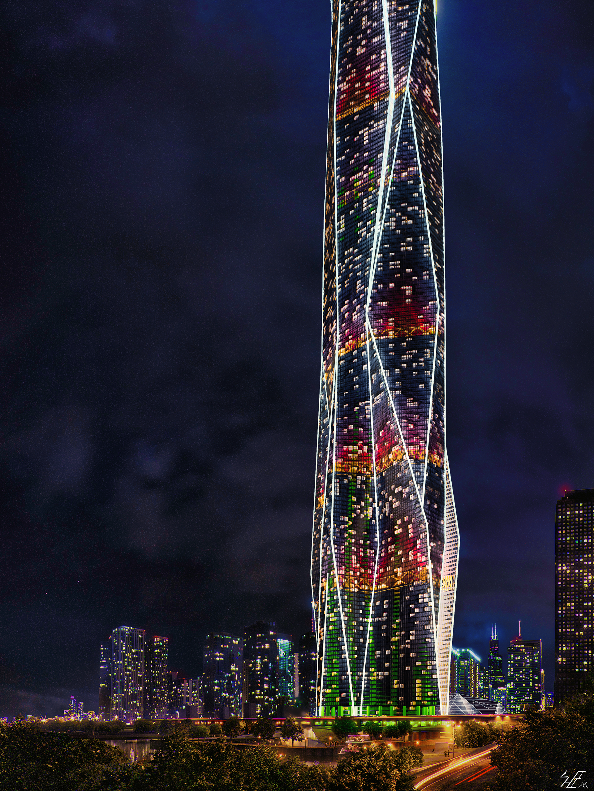 There maybe many ways to apply power, but I developed a magnetic field steel structure by applying the relationship between current and magnetic fields. In the section where the aforementioned building is divided into three branches, there are four huge steel pillars on the outline side of each building. Inside the four pillars, there are 300 huge magnets and 299 ultra-high-strength steel. Huge magnets respond to steel, push, pull, and fix the steel according to the arrangement of the magnets. The arrangement shape of the magnets is arranged according to the shape of the Cage that is not affected by the magnetic field. And the joints that connect the steel and the cage tightly bind the steel and the magnet. In addition, a high-pressure current flows in the perpendicular direction of the magnet, causing the magnetic field of the magnet to be tens of times stronger. Based on these huge steel pillars, if we raise the floor and curtain wall with the feeling of tying up a concrete layer, human will finally complete a ultra skyscraper using power technology & structure.