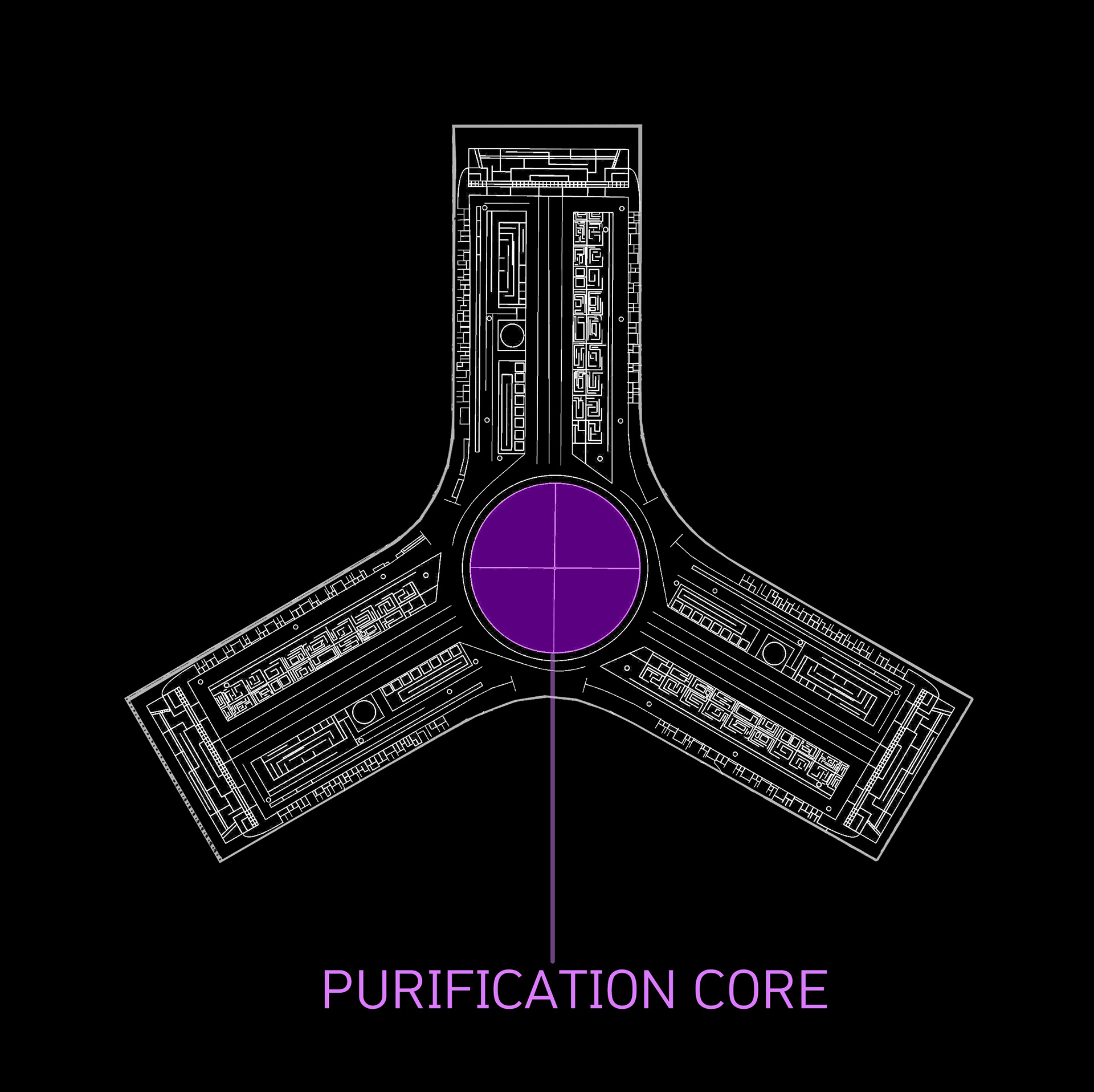 Step 2: The air collected by Purification Sphere moves through a pipe in the center of the slab to a huge hole in the center of the building.