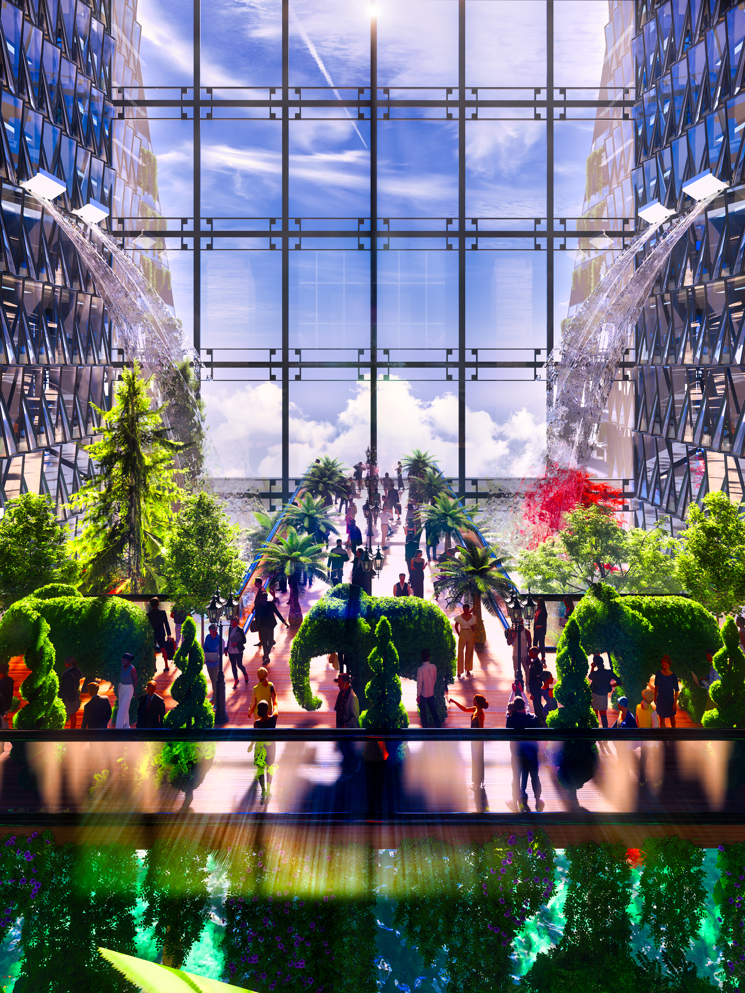 TOP buildings have various systems to purify the environment, but at the same time, all facilities necessary for humans to live, such as people living, working, and large green spaces and farms are here